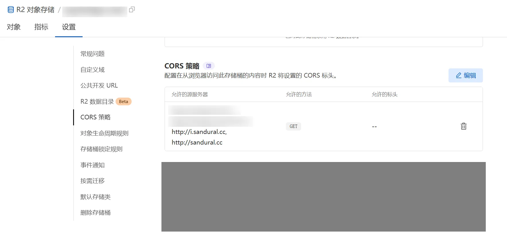 由于采用了公开URL 访问的方式,cloudflare 提供的*.r2.dev 子域名在国内是基本无法访问的,所以必须搭配自己的独立域名,配置一个子域名即可。