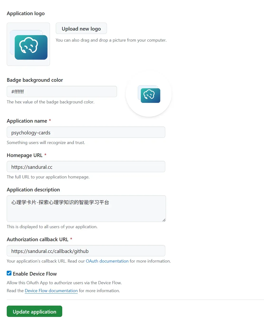 授权通过回调地址:https://sandural.cc/callback/github 。不少开发者认为回调地址字段只能填写一个地址,无法为开发环境(如 http://localhost:5173/callback/github )提供支持,这确实带来了一些麻烦。不过建议还是固定使用生产环境的地址,下文会介绍相应的解决技巧。